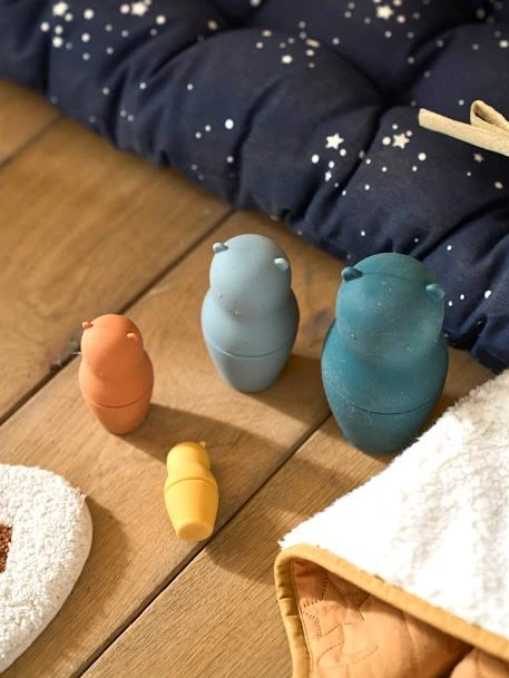 Les fameuses poupées russes prennent ici la forme d’un adorable ourson ! Les enfants aimeront ouvrir les boites et découvrir l’ourson plus petit qui se cache à l’intérieur. Ces boites gigognes se composent de 4 ours en silicone. Pour jouer, il faut encastrer chaque ours les uns dans les autres, de la plus grande boite à la plus petite.