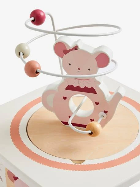 Un cube d’activités en bois qui ne manque pas d’idées pour éveiller et émerveiller bébé ! 5 faces plus intrigantes les unes que les autres, avec sur le haut du cube, un boulier en forme de théière souris qui peut se retourner pour fermer la boite. Sur les 4 faces : une face labyrinthe, une face miroir, une face avec 3 formes à encastrer et une face avec 2 images à reconstituer ! Ce grand cube d’activités promet de jolies découvertes à votre bébé !