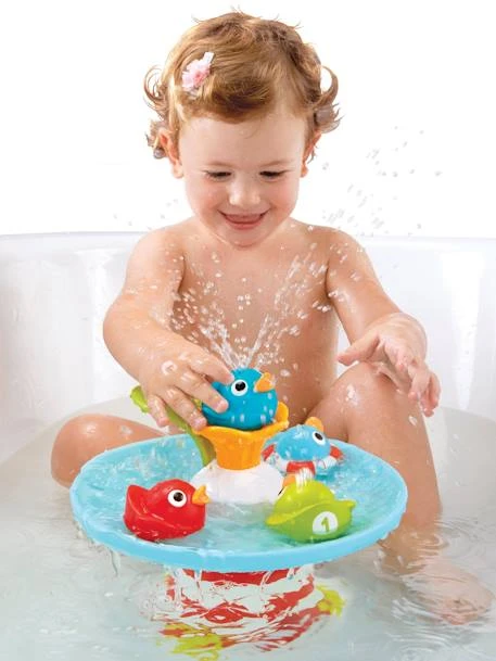 La course aux canards de Yookiddo est un jeu de bain qui amusera les enfants ! La course dĂ©marre lorsque l’enfant appuie sur la feuille. Les canards tournicotent et peuvent se placer au dessus de la fleur pour crĂ©er un jet d’eau diffĂ©rent selon le canard.