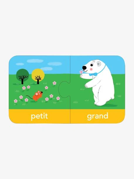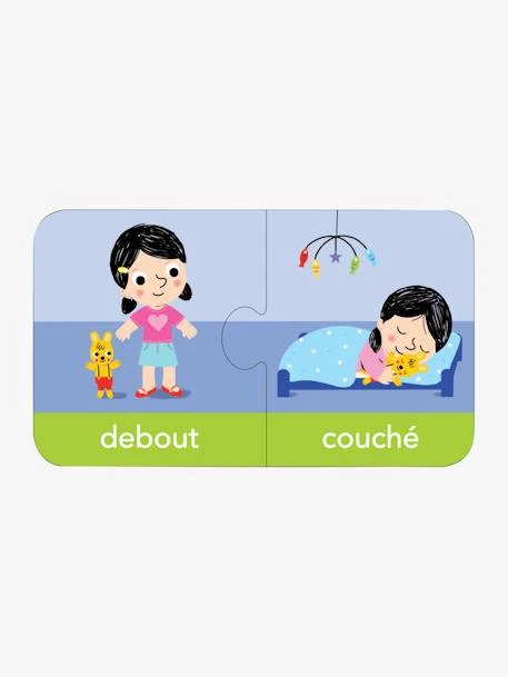 L’enfant joue Ă associer un Ă©lĂ©ment Ă son opposĂ©. Il dĂ©veloppe son vocabulaire en apprenant Ă nommer et Ă dĂ©crire les images. Un jeu progressif permettant de jouer seul ou avec les copains. Chaque pièce de puzzle est illustrĂ©e de dessins colorĂ©s. Une façon ludique d’assimiler le concept des contraires.