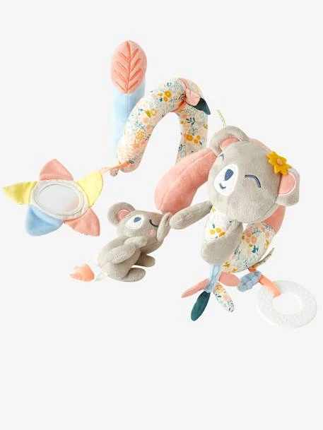 - Spirale avec 3 jouets : un anneau pour les dents, un koala vibrant, une fleur avec miroir